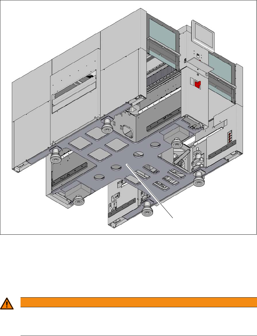 《用户手册》 SIPLACE X- 系列 4 设置与调试 使用软件版本 708.1 或更新 05/2015 版 4.1 运输和交付配置 221 4 图 4.1 - 3 接触表面 - 货叉与 PCB 传送方向平行 (图示以 SIPLACE X3 S / X4 S 为例) (1) 叉车货叉的接触表面 4 4 4.1.5.4 运输贴片机时必须注意的事项 4 (1) 警告 有损坏贴片机支脚的危险! 贴片机机架中支脚的螺纹可能会 因为在地板上被拖…