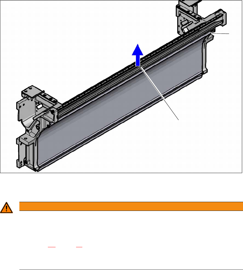 4 设置与调试 《用户手册》 SIPLACE X- 系列 4.4 根据 PCB 传送导轨的高度调整 元件料车 使用软件版本 708.1 或更新 05/2015 版 254 4.4.1 警告说明 4 4.4.2 工具和设备 调整料车高度时,需要用到以下工具 和设备: – 安装器件 (物件号: 03015976 -xx) – 用于抬升料车台的升 降器件,负荷能力最小为 8 0 kg 4.4.3 更改料车高度 4 使用两颗 M8 x 50…
