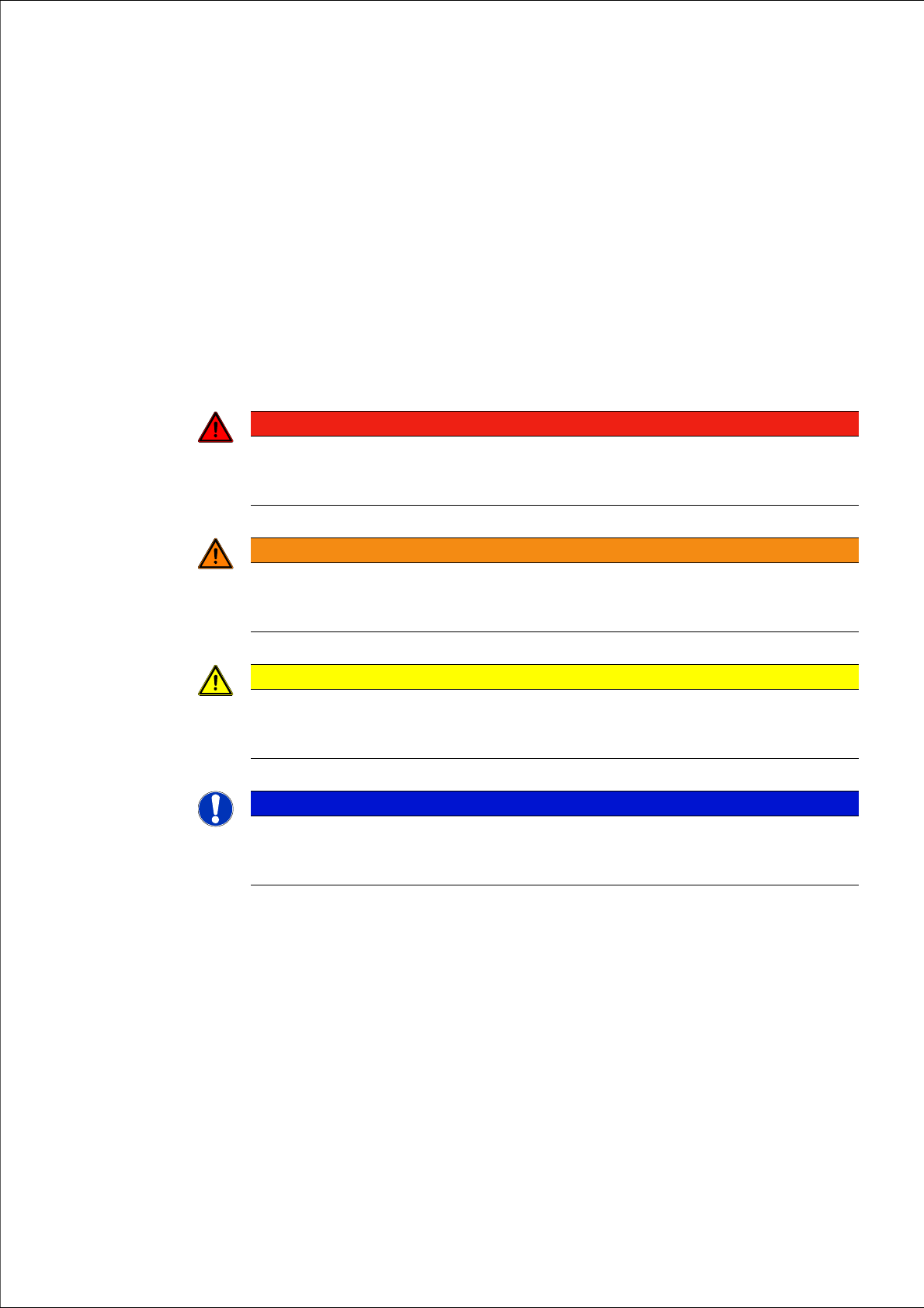 这些注意事项已经使用了警示用的三角形做了突出显示,根据不同的危险程度显示如下: