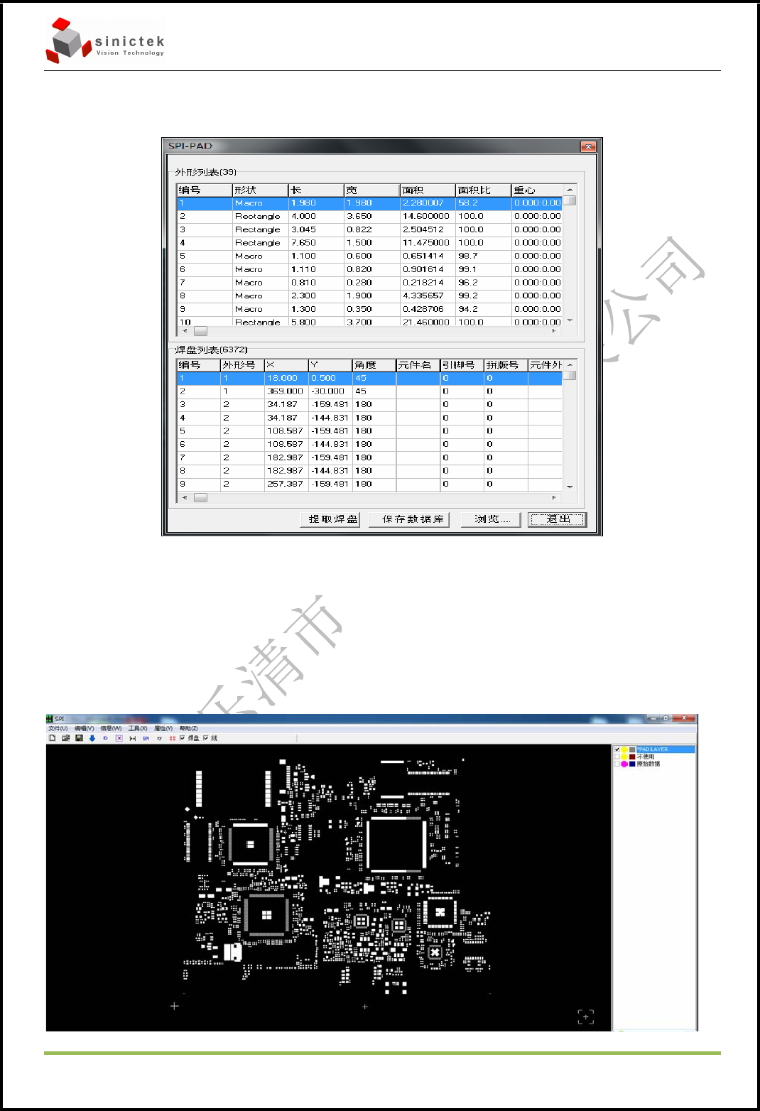 3D SPI 操作手册 思泰克光电 科技有限公司 Page 16 Copyright by Sinic-T ek V isi on T ec hnolog y Co., L td. 第四种:根据 Dcode 选择删除 按快捷键 W 鼠 标会变 化为 。 进行框选或点选。 选择后 按快捷组合键 Ctrl+S 进行相同 Dcode 选择。 选择后按删除 按钮进行删除。 4.1.3 数据处理 描述:对数据进行处 理并输出需要的 MDB 文件 …