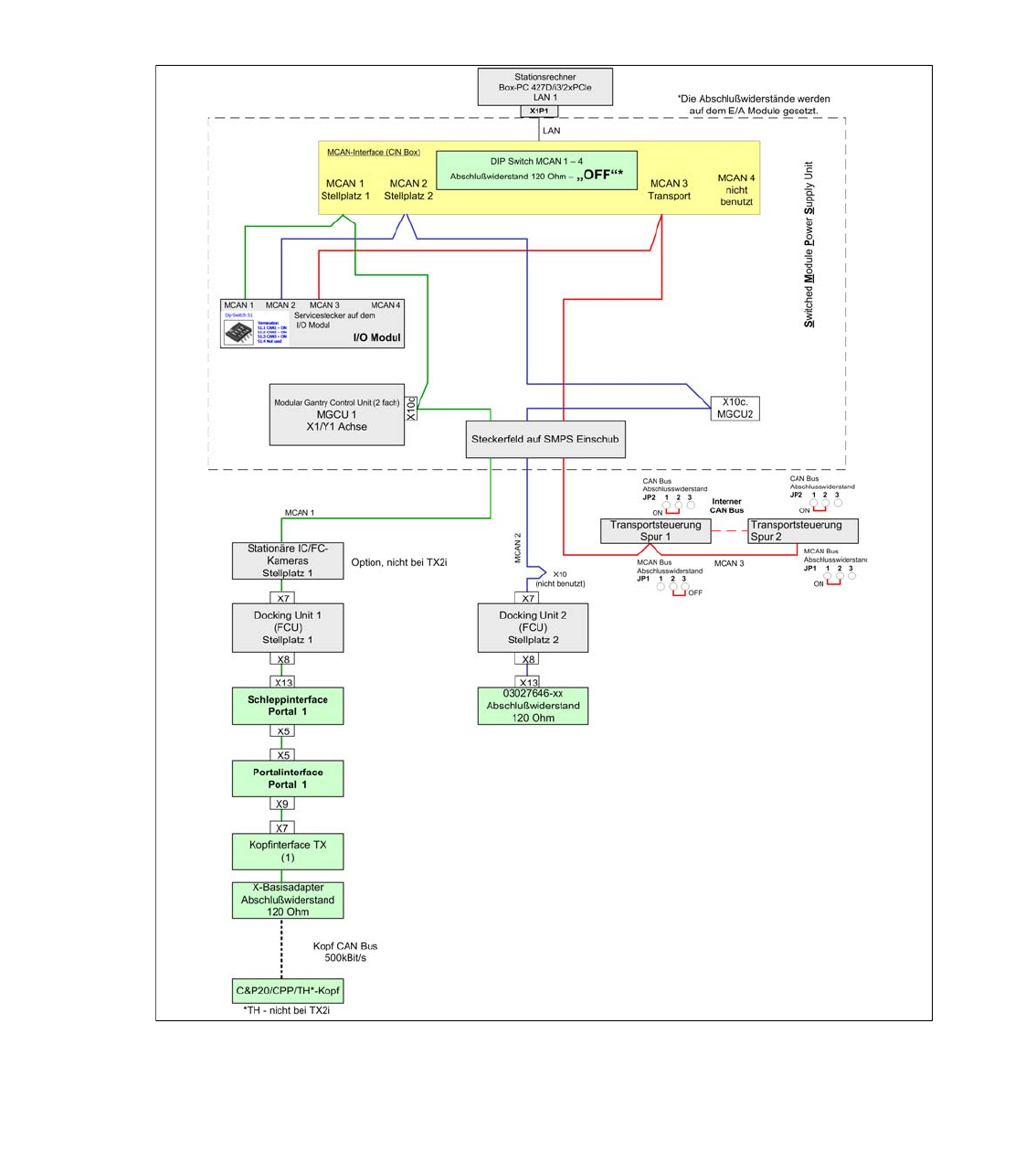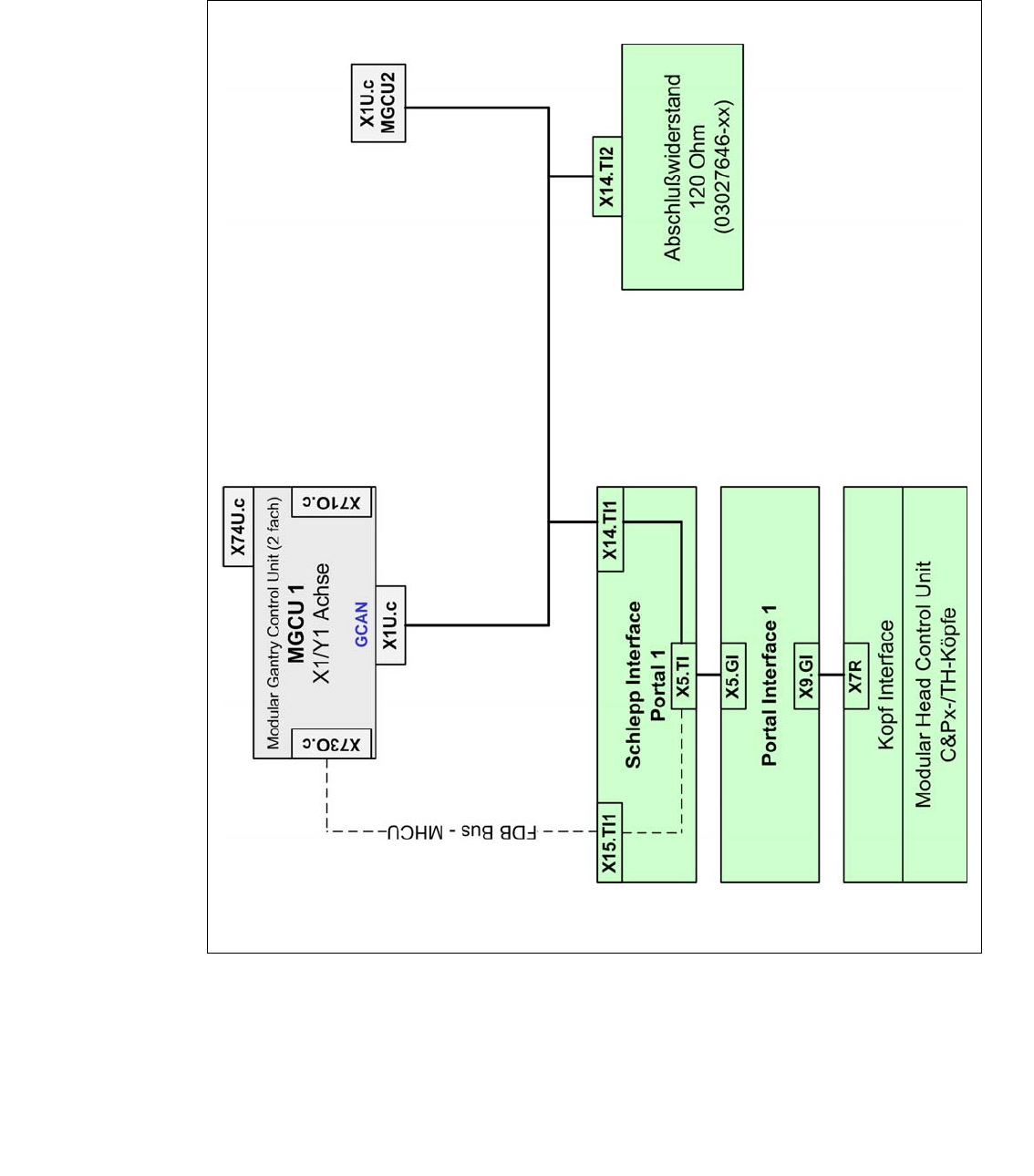 Der GCAN-Bus ist für die Kommunikation zwischen den Modular Gantry Control Units (MGCU´s)