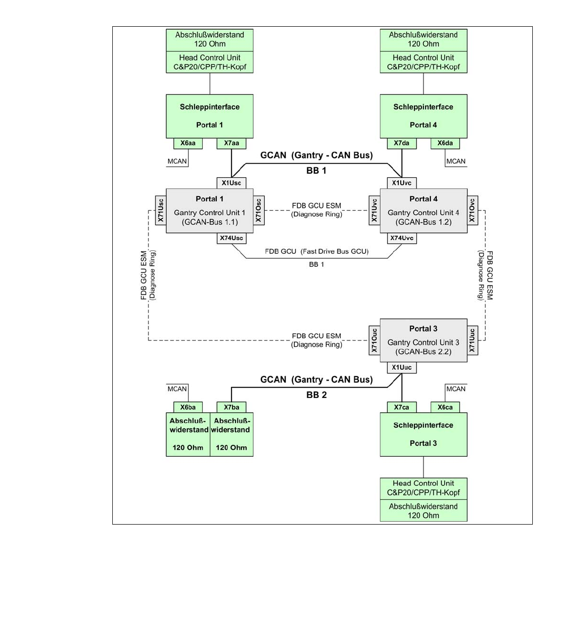 Der GCAN-Bus ist für die Kommunikation zwischen den Gantry Control Units (GCU´s) und Head