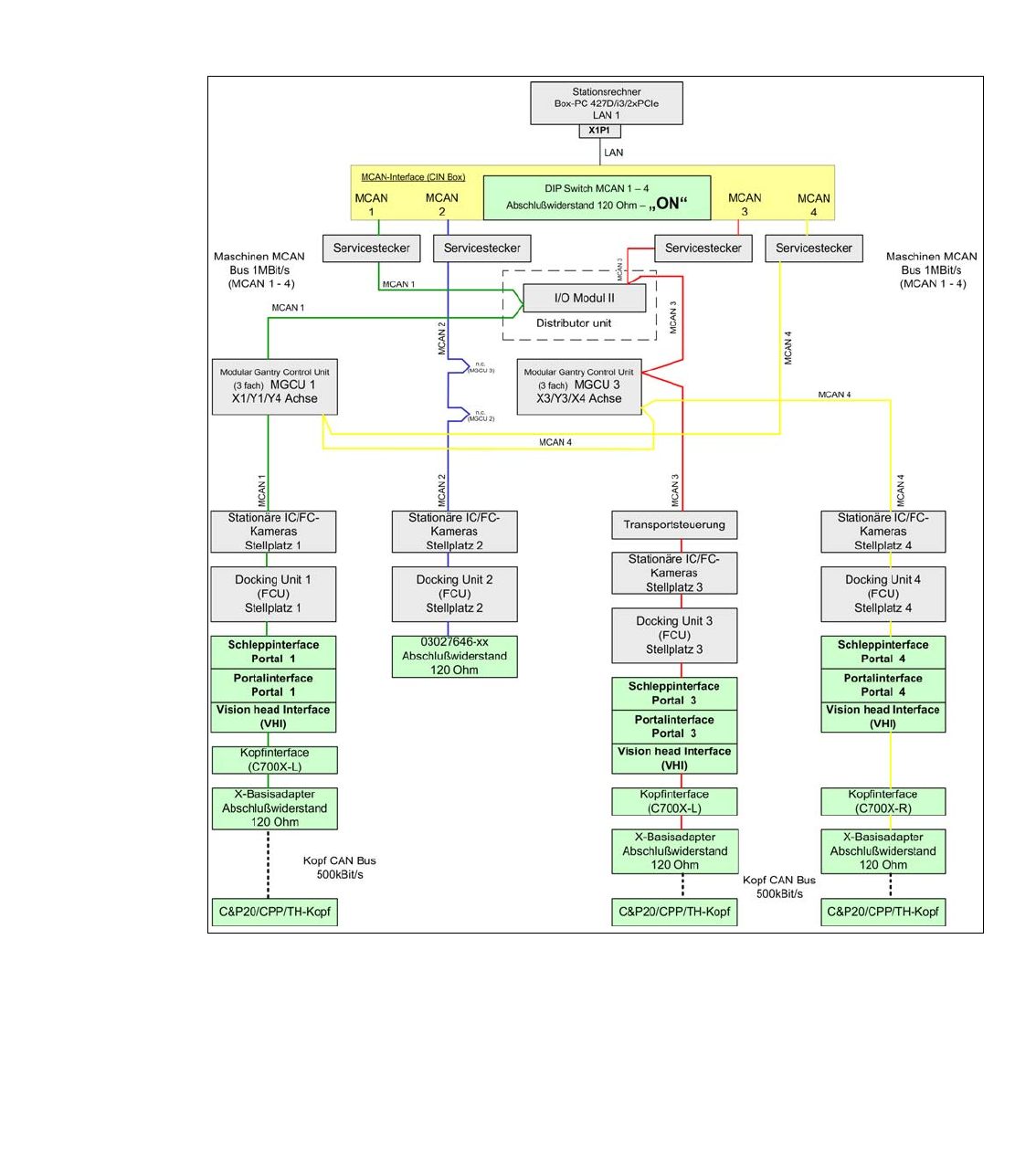 Der GCAN-Bus ist für die Kommunikation zwischen den Modularen Gantry Control Units
