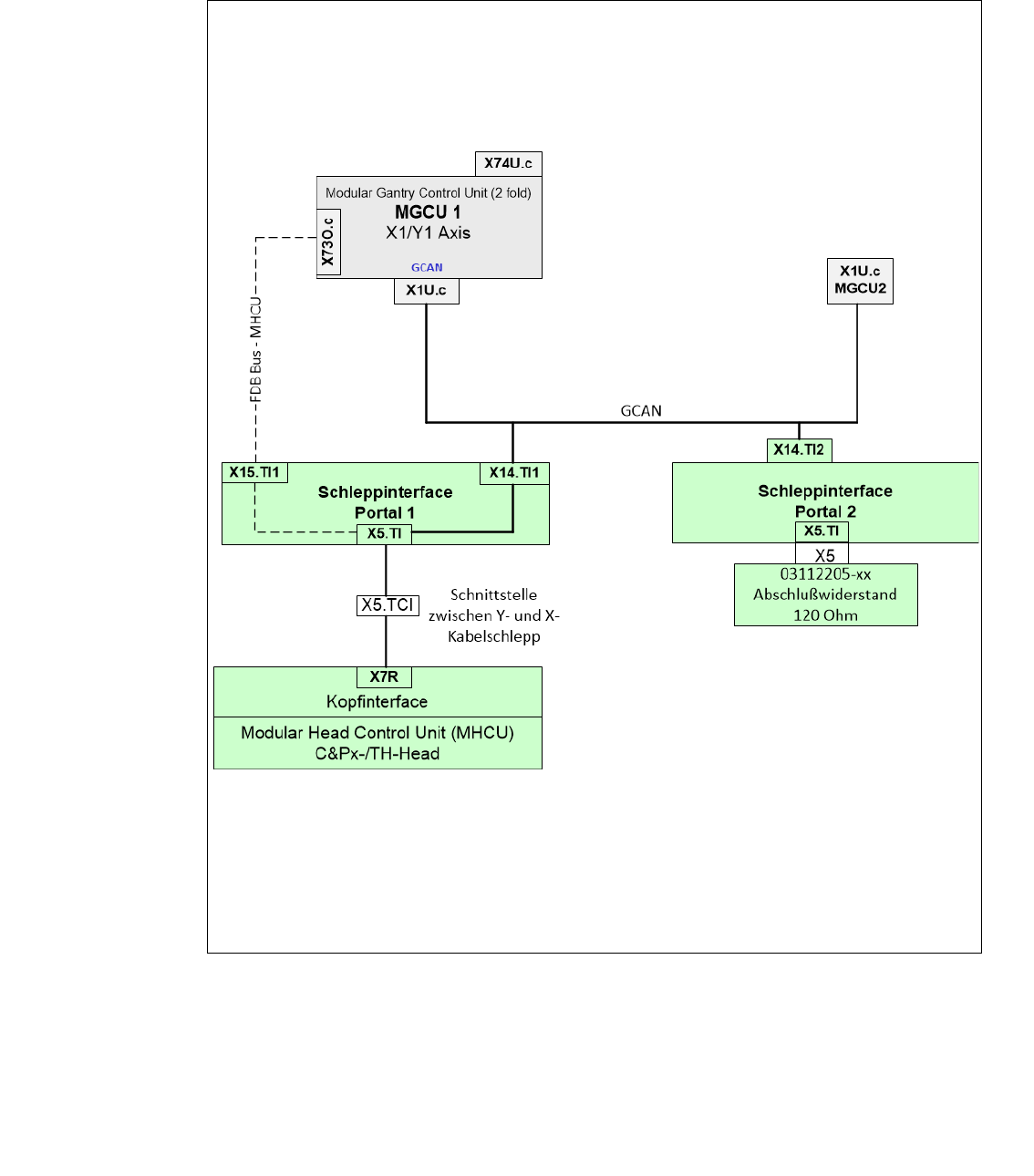 Der GCAN-Bus ist für die Kommunikation zwischen den Modular Gantry Control Units (MGCU´s)