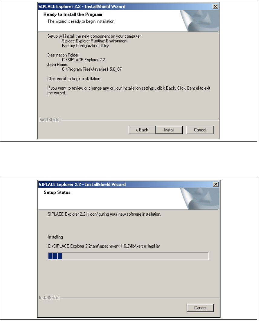 → Betätigen Sie die Sie die Schaltfläche Install, die eigentliche Installation von SIPLACE