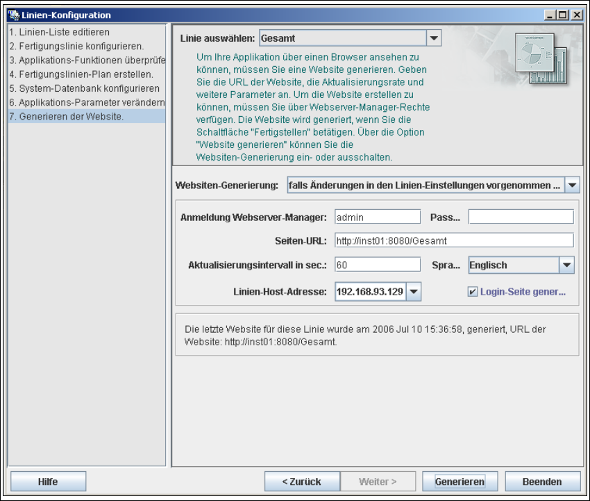 → Um Ihre Fertigungslinie im Webbrowser zu überwachen, müssen Sie eine Website generieren.