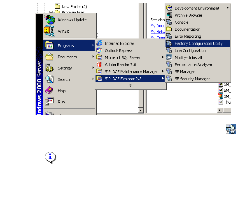→ SIPLACE Explorer 2.2 → Factory Configuration Utility starten.