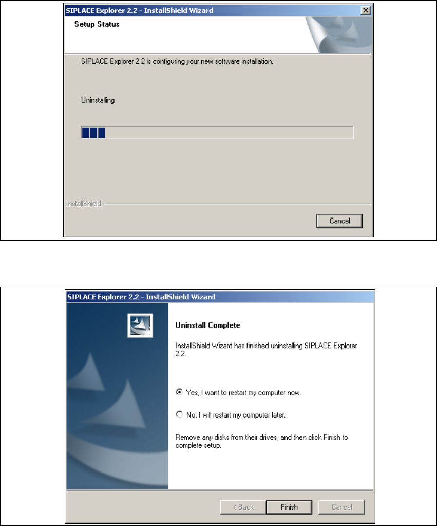 → Beim nächsten Neustart Ihres Computers ist SIPLACE Explorer 2.2 nicht mehr verfügbar.