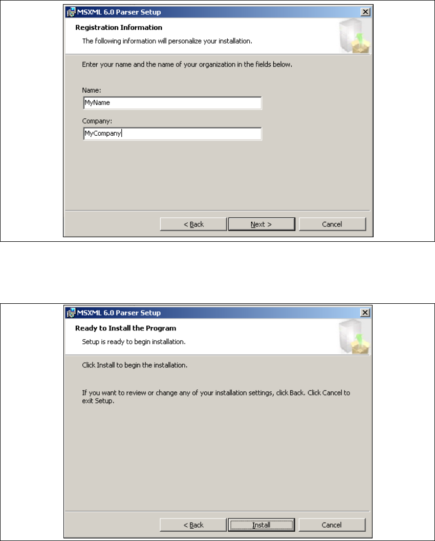 Abb. 5 - 28 MSXML 6.0 Setup - Benutzerinformationen