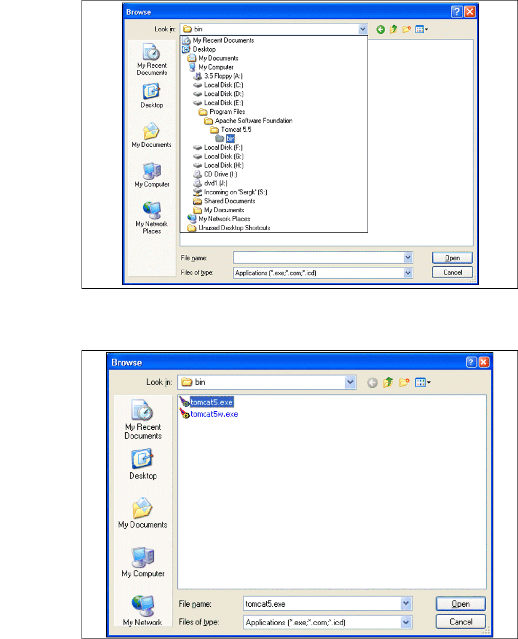 → Wählen Sie die Datei tomcat5.exe aus und betätigen Sie die Schaltfläche Open.