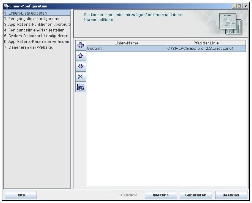 → Die hinzugefügten Fertigungslinien werden in dem Dialogfenster Linien-Konfiguration -