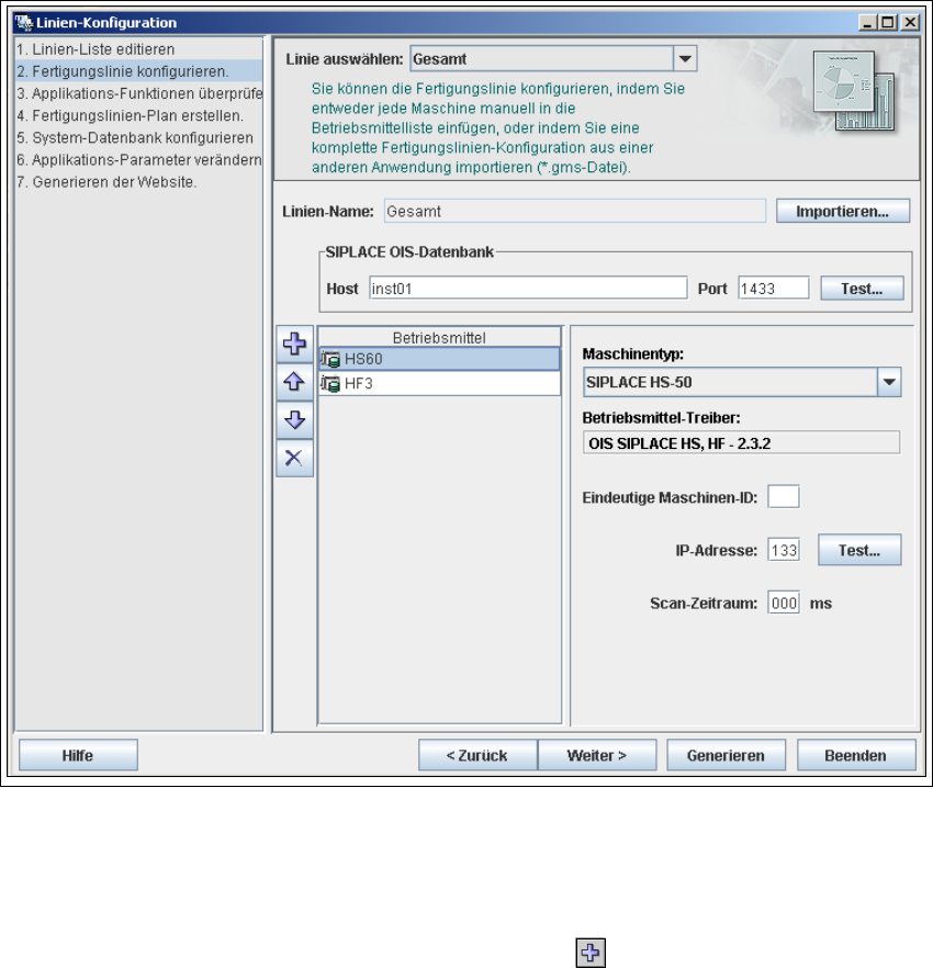 → Haben Sie die Linien-Konfiguration nicht aus OIS importiert, müssen Sie alle Maschinen in der