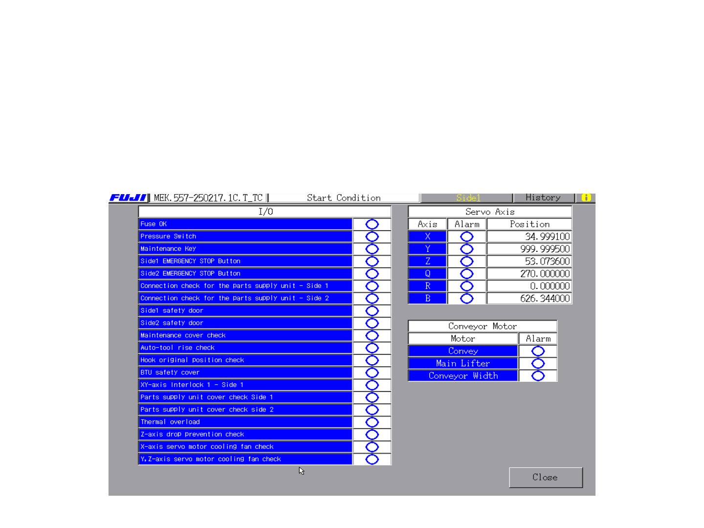 常的启动运行,必须每项I/O后面显示都蓝色的”O”,当有其中某项后面为红色