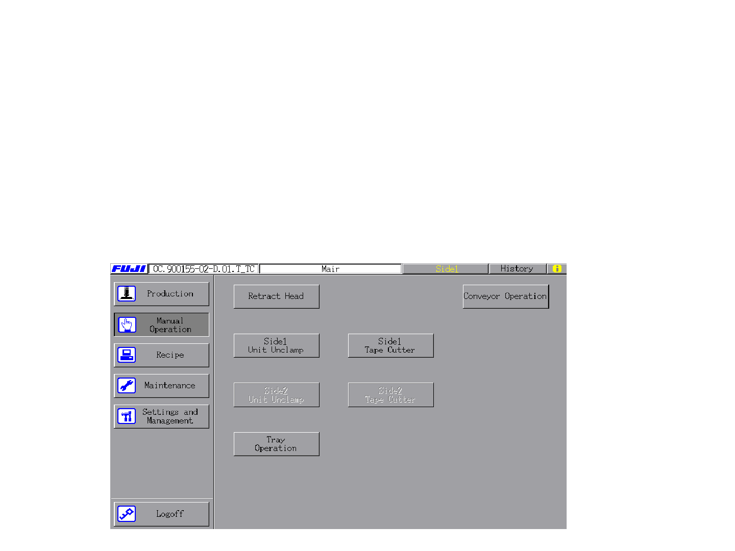 当在SIDE1侧操作机器,则Tape Cutter Stage1命令可使用,按下该命令, START
