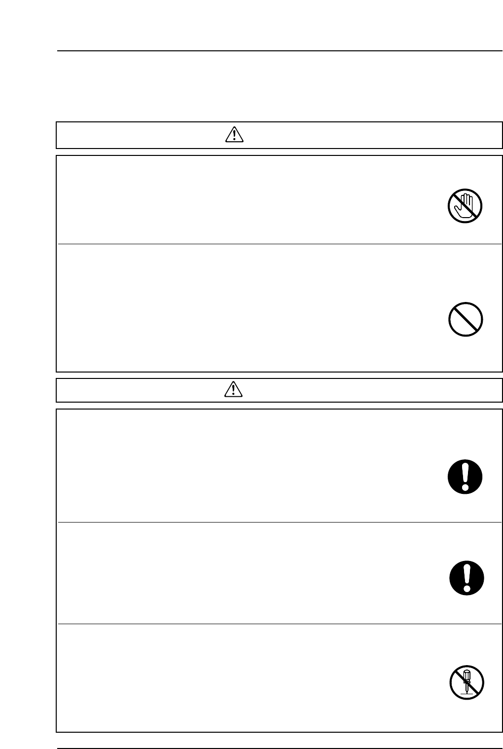 ● When safety covers or doors are removed, body parts or clothing