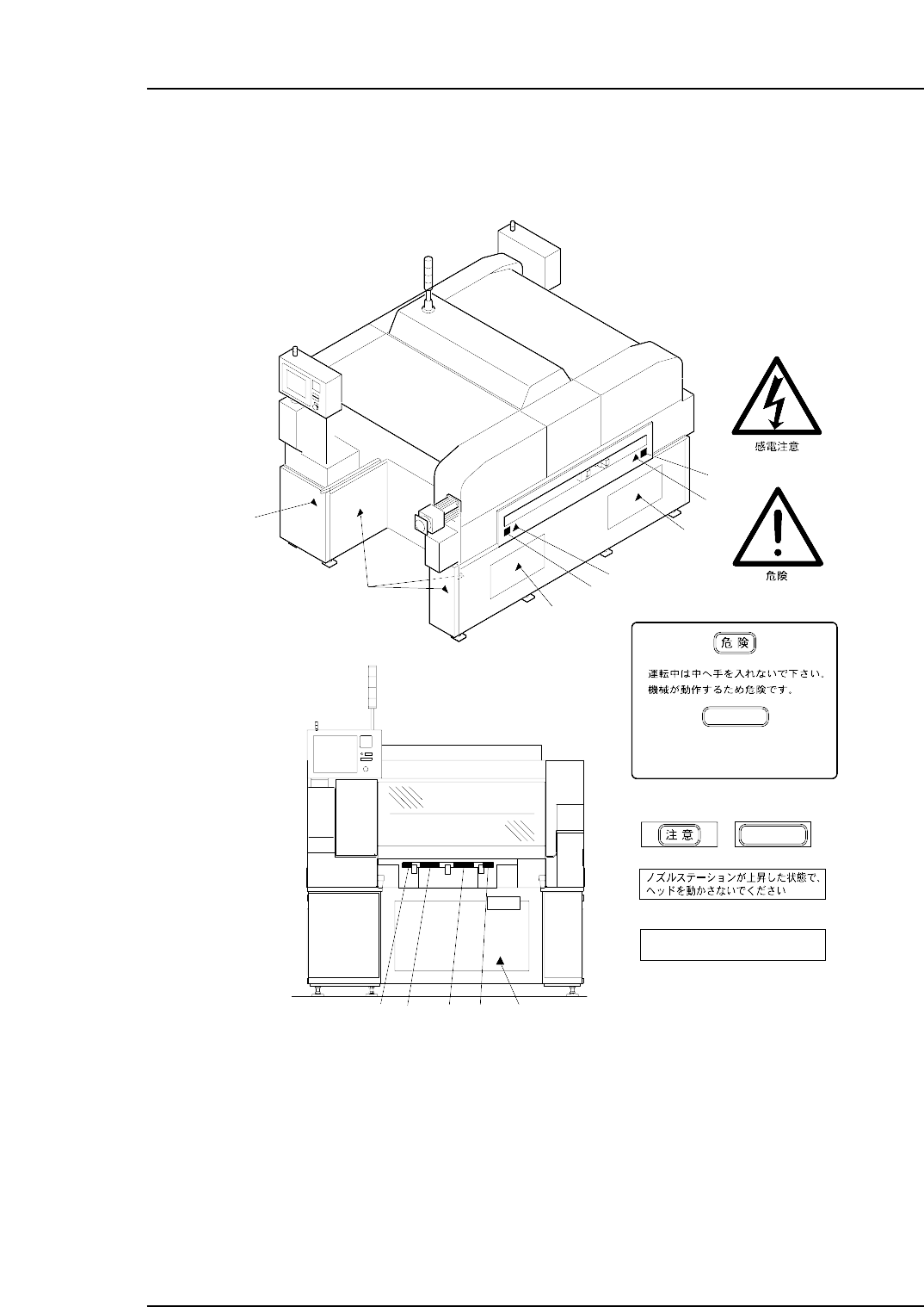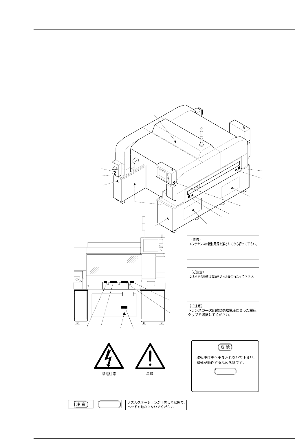 4. Safety Labels To warn the operator of hazards, safety labels are attached to the machine at the positions indicated in the figure below. Familiarize yourself with each label and its message before operating the machin…