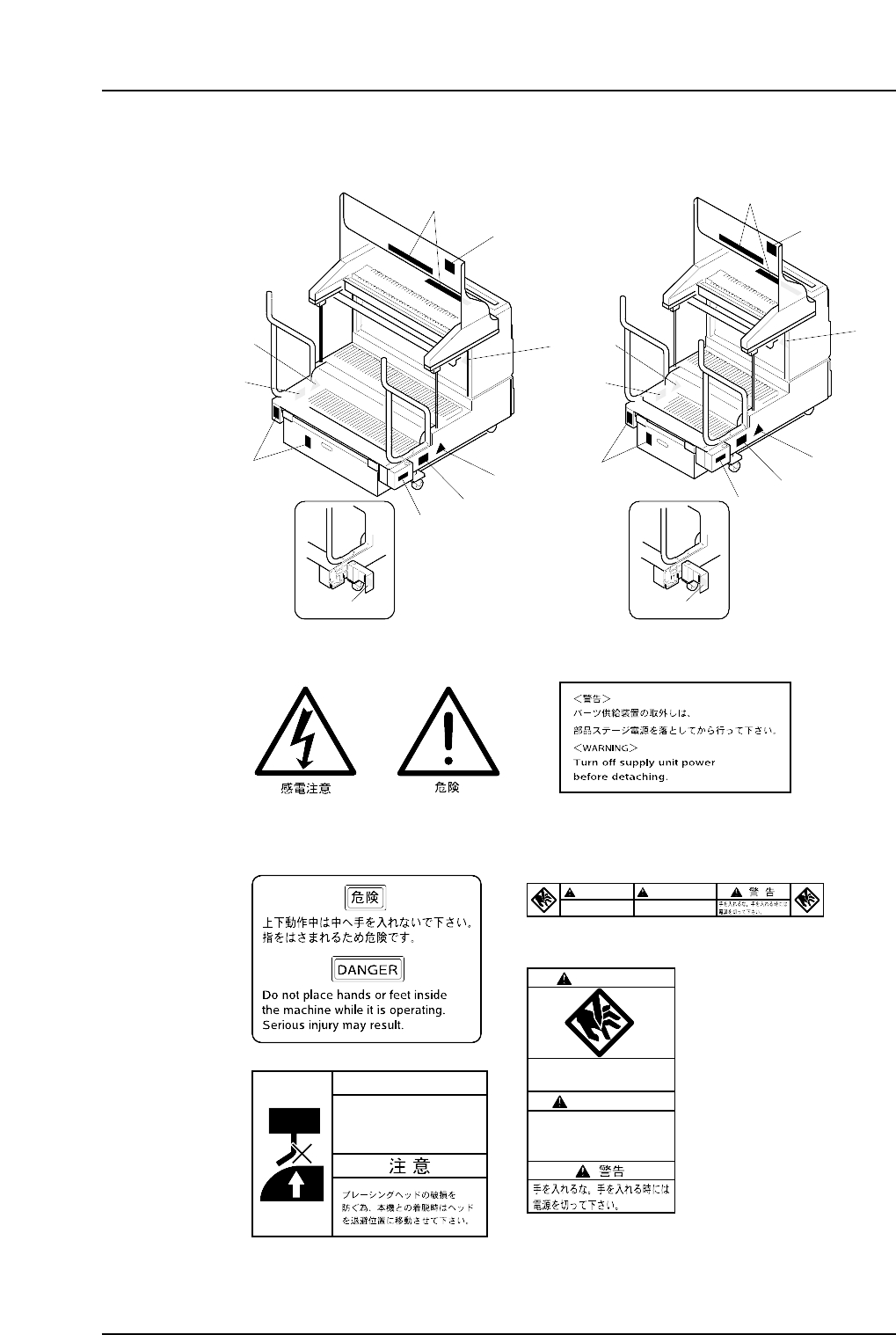 on the machine at the positions indicated in the figure below.