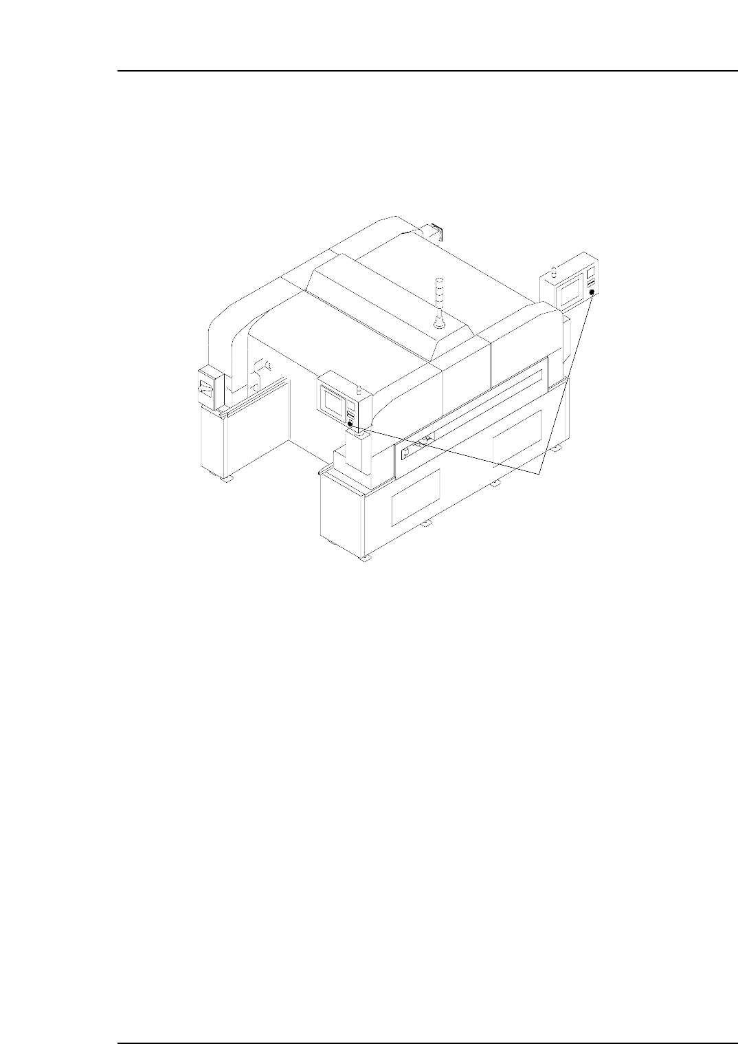 5. The EMERGENCY ST OP Button In the event of an emergency, press any of the red EMERGENCY STOP buttons located on the machine at the positions indicated in the figure below. Note: The illustration above shows the exampl…