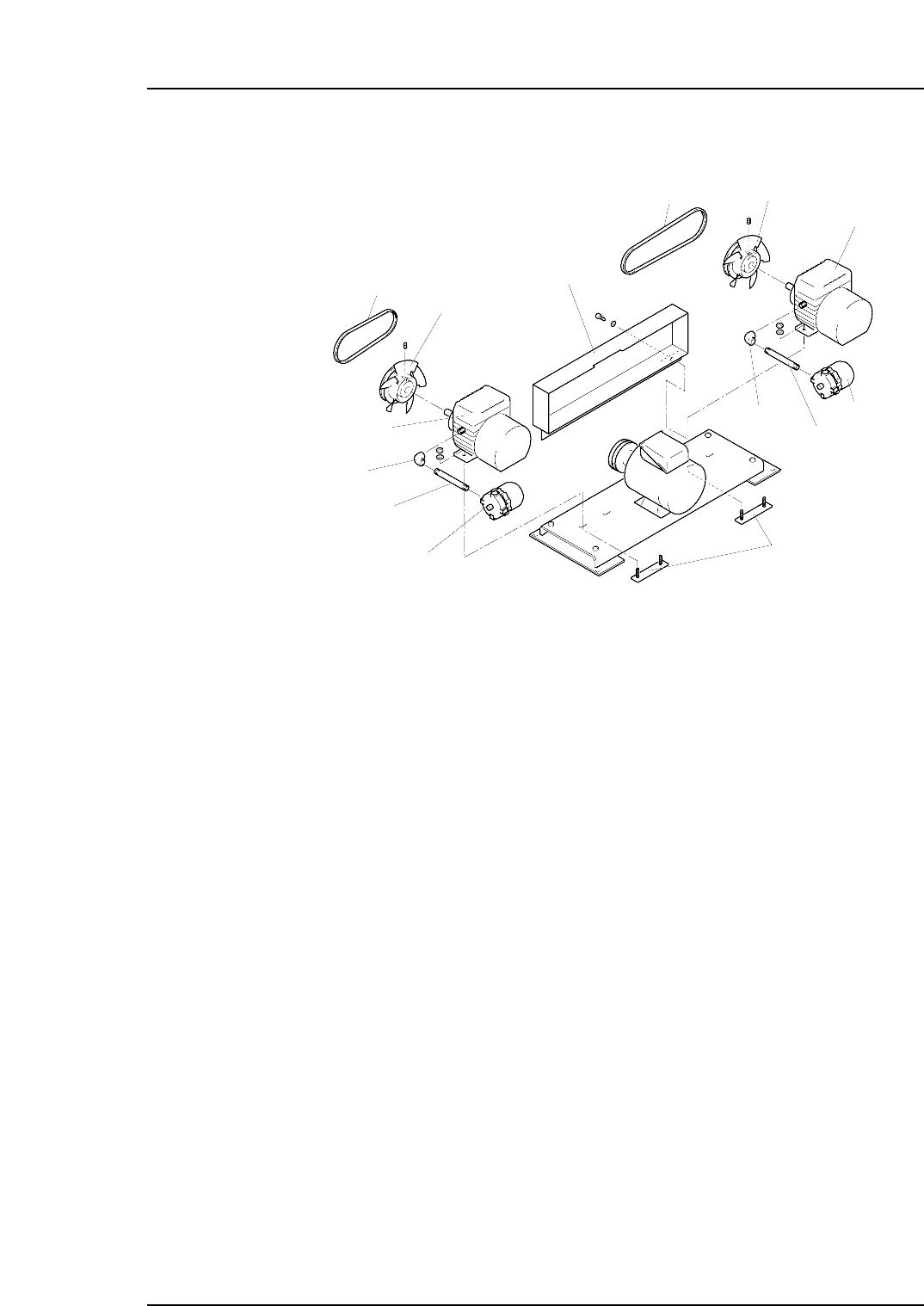 7. Attach the vacuum pumps to the base, then attach belts 1 and 2. Belt 2 must be