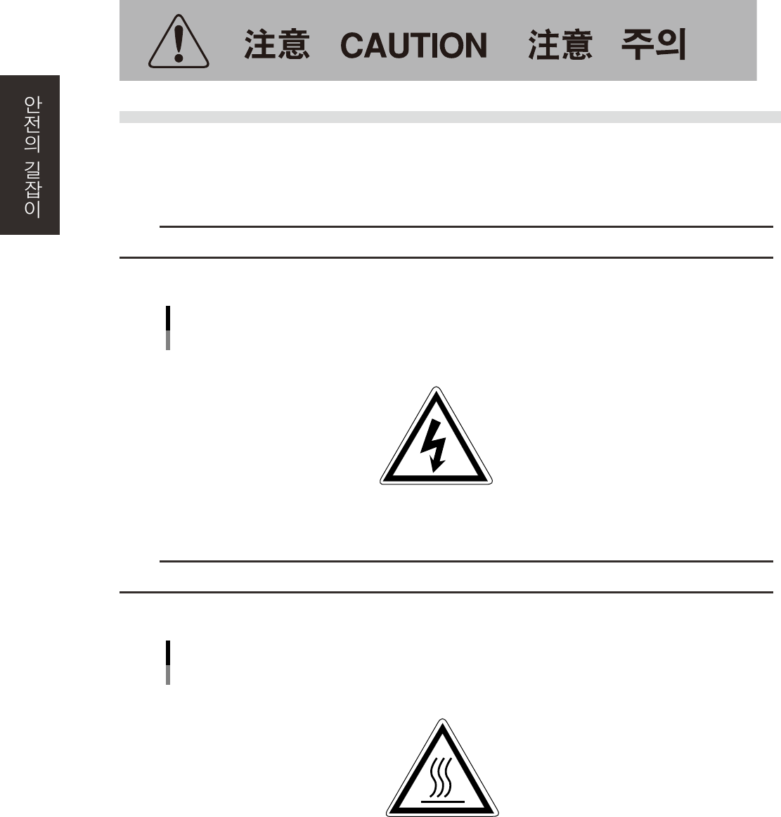 xii 3 . 2 주 의 표 시 3 . 2 . 1 인 체 에 의 영 향 ■ 주 의 내 용 c 주의 커버 내의전 원부를만 지면 ,감전 될위험 이있으므로주 의 하 여주 십 시 오 . ■ 대 상 장 비 모 든 장 비 고압주의 만지면 감전 위험 있슴 91101- L C - 0 0 ■ 주 의 내 용 c 주의 가동 부 의모터 는고 온 상태이 므로만지 지말아주 십 시 오 . …