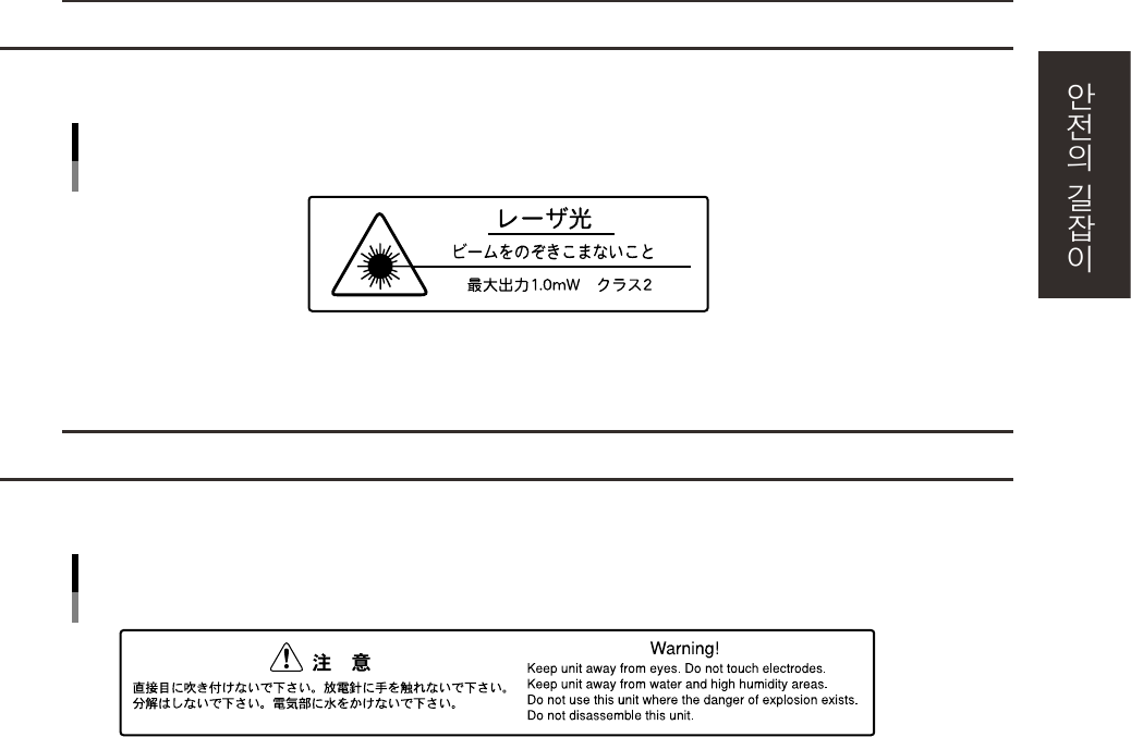 눈에직접내뿜지말아주십시오 .분해해서방전침을만지거나하지말아주십시오 .