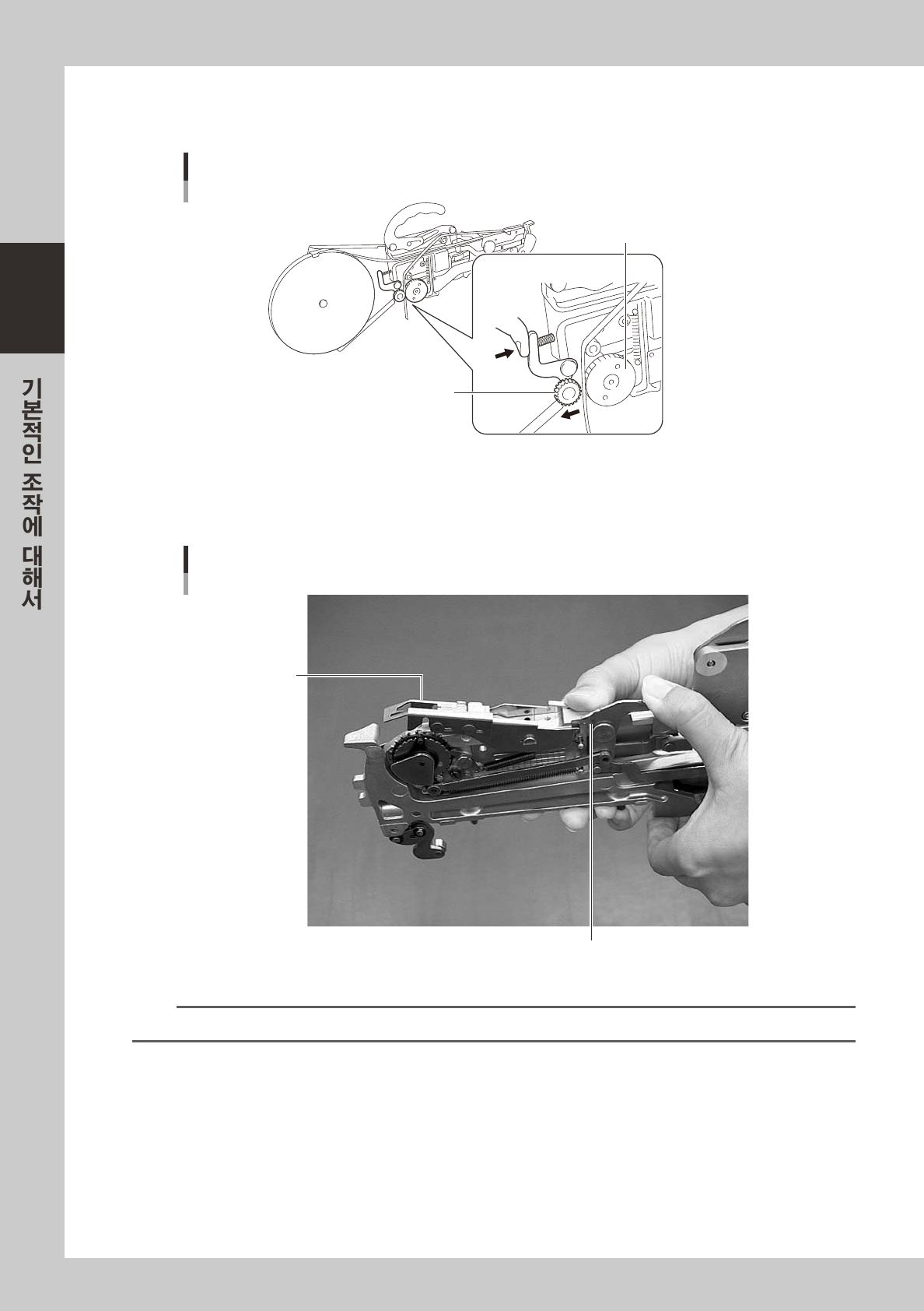 2-30 2 아 이들 롤 러 A S S Y 의 레버를 눌 러 서 , 탑 테이프를 드 라 이브 롤 러 A S S Y 와 아 이들 롤 러 A S S Y 사 이에 끼웁 니다 . 드라이브 롤러 ASSY와 아이들 롤러 ASSY 드라이브 롤러 ASSY 아이들 롤러 ASSY 2 721 0 - M 3 - 0 0 5 테 이 프 가 이 드 를 셋 팅합 니 다 …