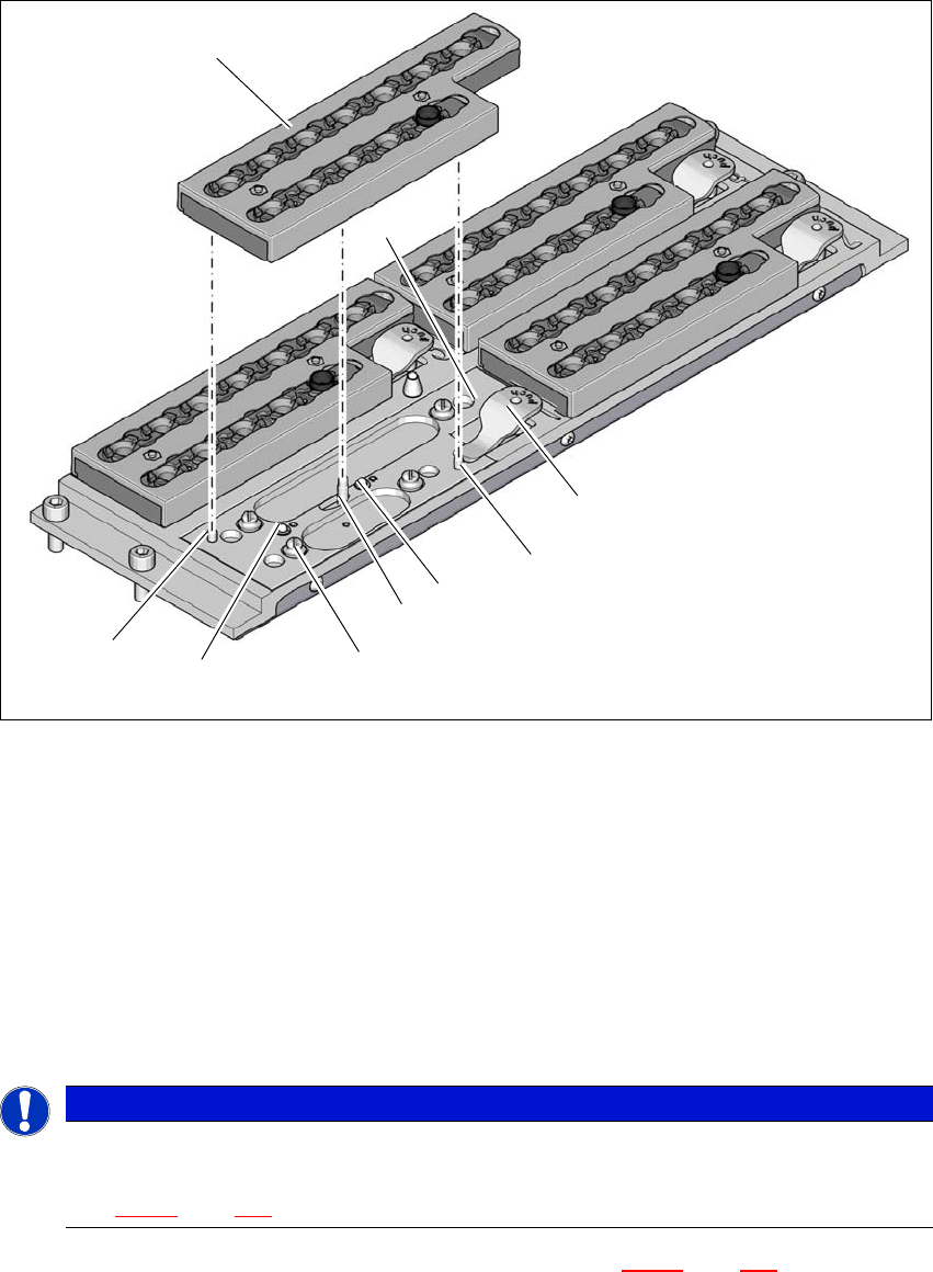 Asenna pipetinvaihtaja siten, että vino sivu osoittaa komponenttivaunun sisäänvetolaitteen