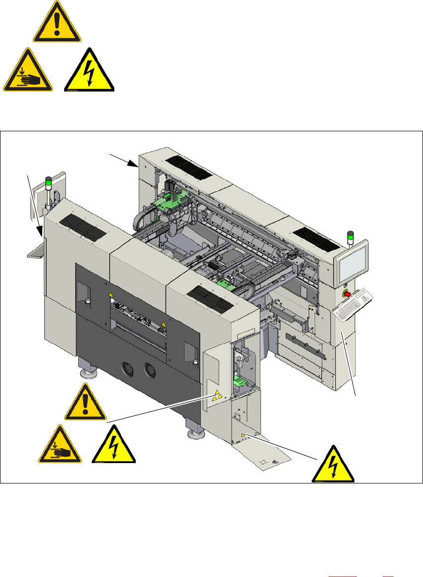 Käyttöohje SIPLACE SX1/SX2 2 Käyttöturvallisuus Ohjelmistoversiosta SR.710.0 alkaen Painos 12/2016 2.2 Varoituskyltit 49 2.2.4 Virt alähteen varoituskyltit 2 Merkki W206 kuvassa 2.2 - 6 , sivu 49 tuotenro 0 3009345-01 ( …
