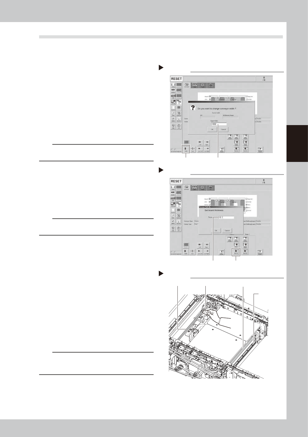 conveyor width”, press [OK]. The
