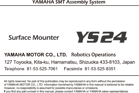 just a YAMAHA surface mounter (or related machine) and off-line PC nor can accept responsibility for problems