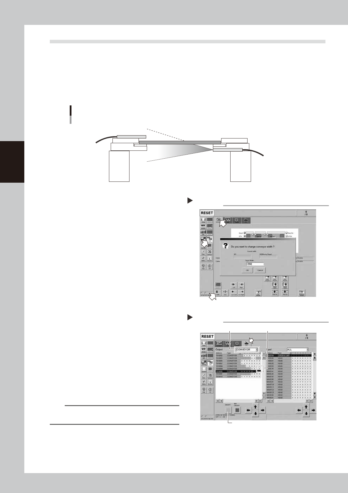 3-7 3 Periodic maintenance items 5 Check the sensor status. Change the conveyor width again and check that no error message appears. 6 Check the portion around the sensor . If the error message still appears, the light r…