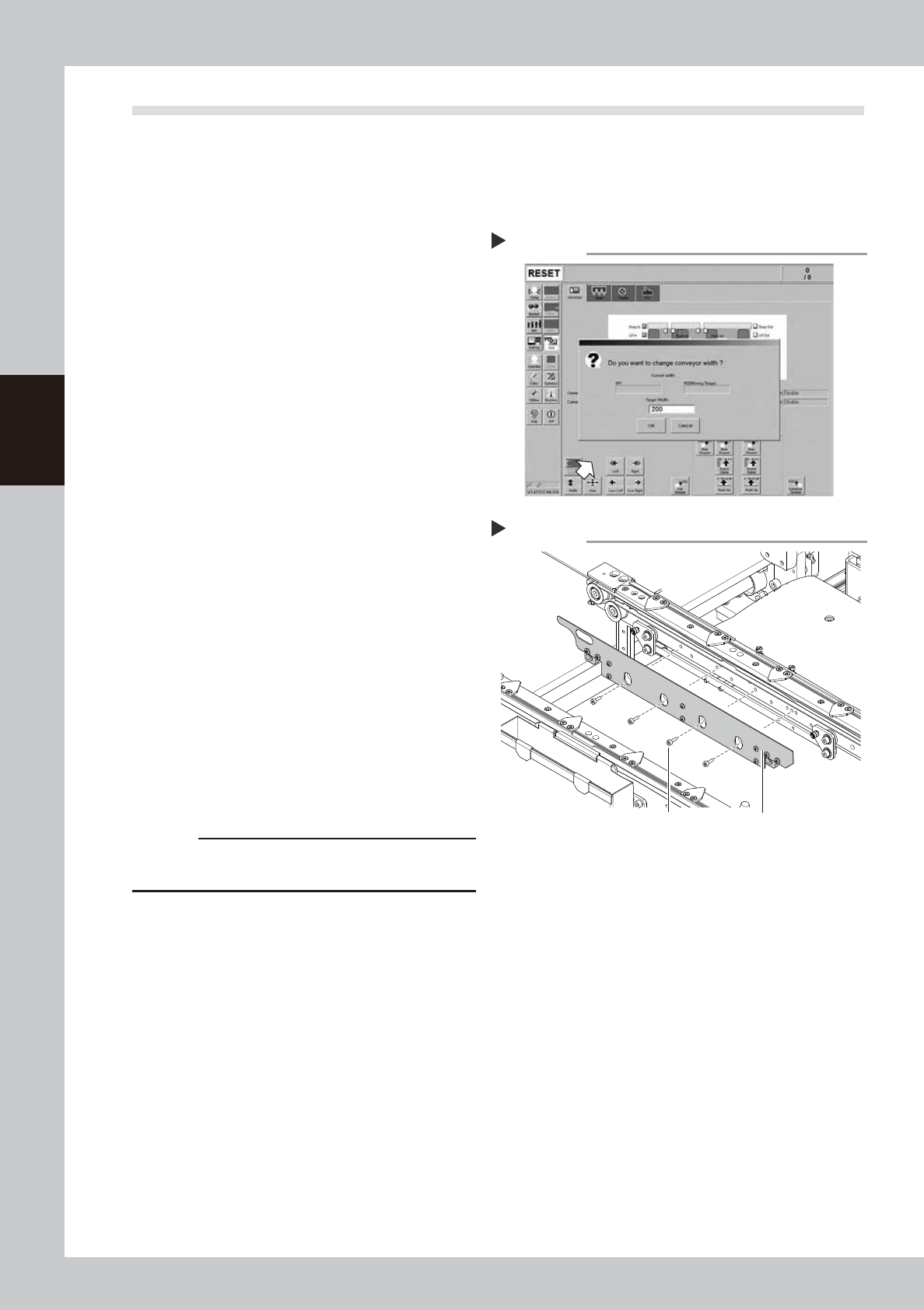 Conveyor Width Change screen.