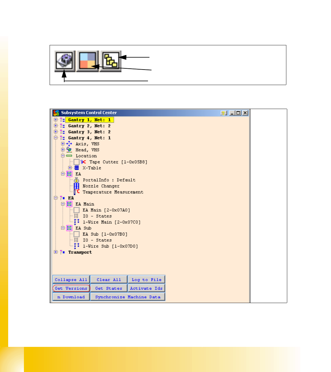 Fig. 3.5 - 12 Icons: properties, machine configuration, subsystem control center