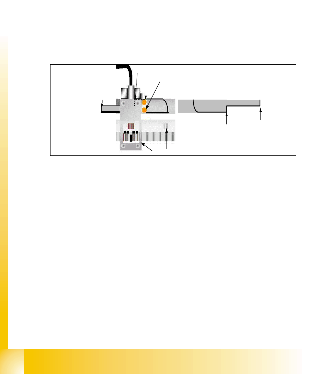 Left and right of every incremental scale are mounted the metal actuators for the BERO´s. The