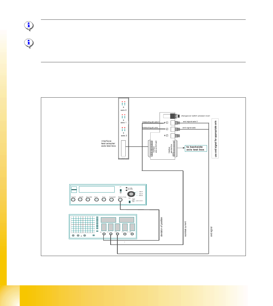 – An additional connector on channel 4 is the actual pos.=nom.pos. signal from the axis testbox.