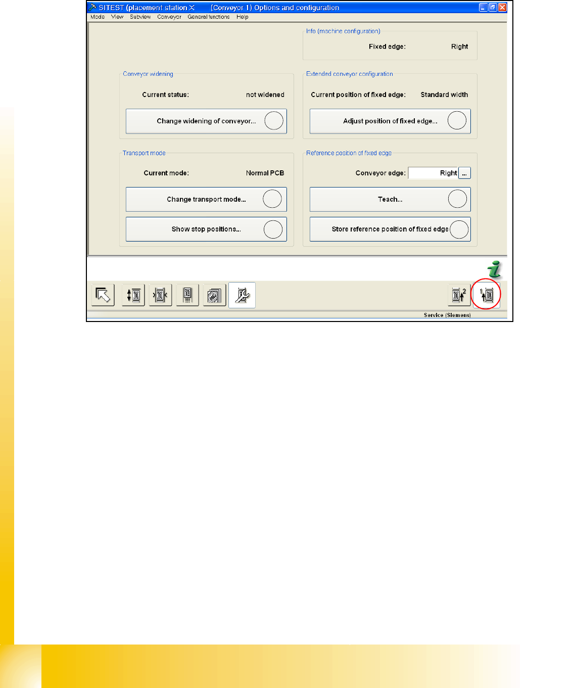 1 - 34 S tudent Guide SIPLACE X 1 1 Sitest Edition 09/2005 34 1 1.2.17 New function in the Sitest program 1 1.2.17.1 Menu of transport Fig. 1 1.2 - 19 T ransport - option and configuration a Change widening of conveyor (…
