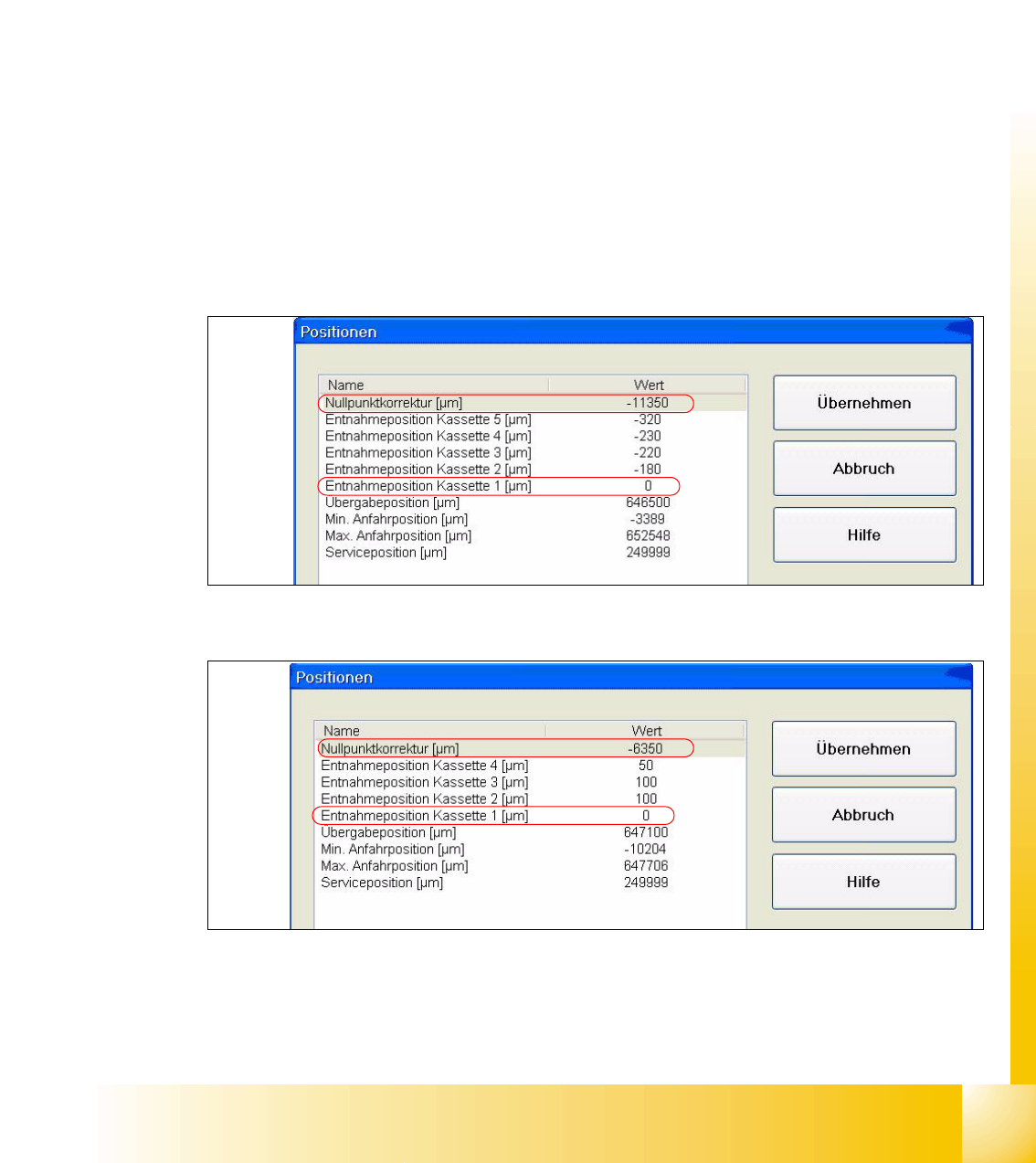 When you accept this calibration procedure with "ACCEPT" now, you get a wrong transfer position