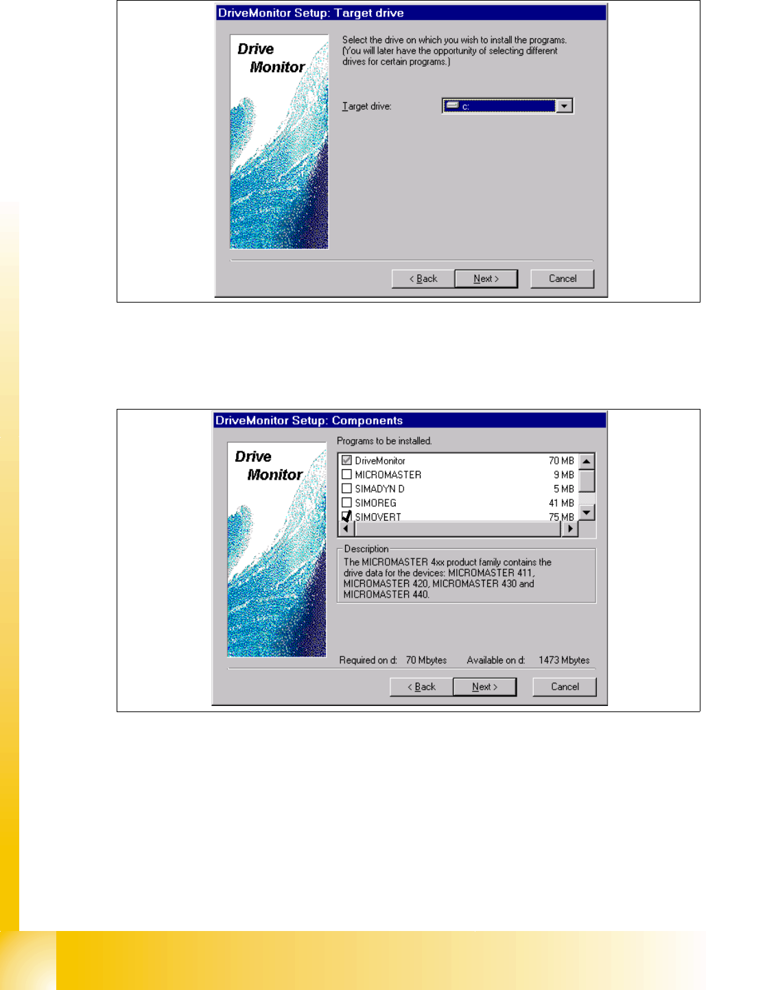 ➠ Choose the program Drive Monitor and Simovert.