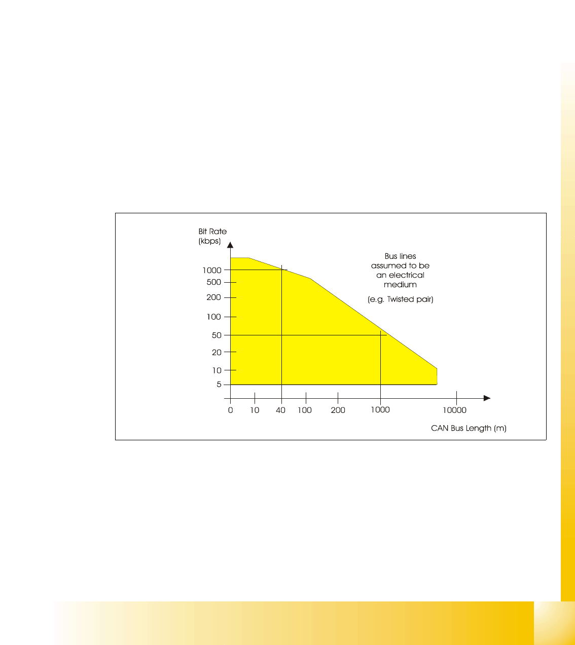 meters when using a twisted wire pair. For bus lengths longer than 40 meters the bus speed must
