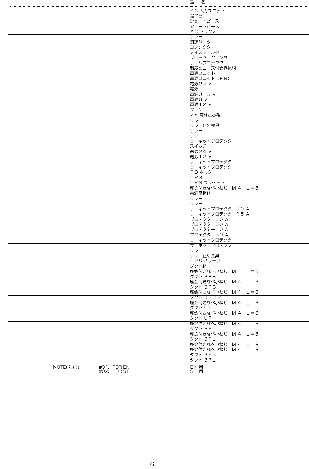 REF.NO NOTE PART NO D E S C R I P T I O N Qty