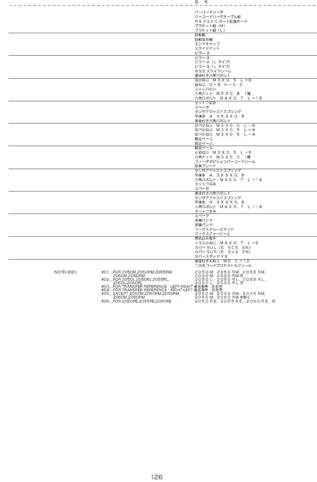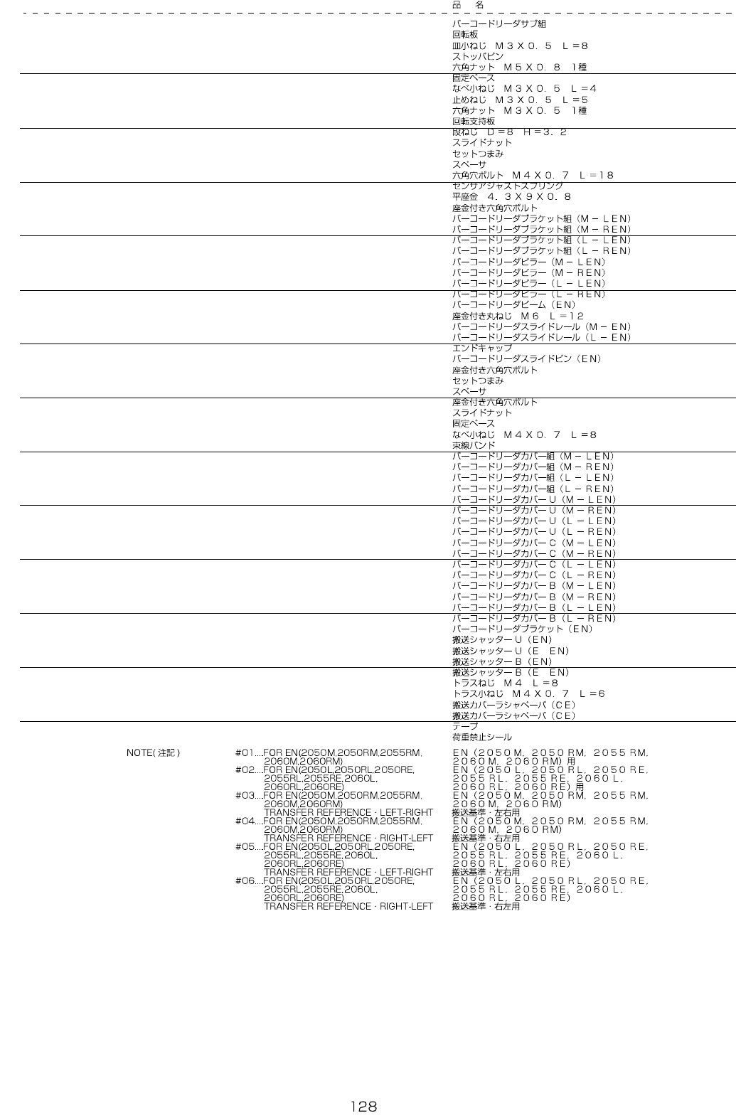 REF.NO NOTE PART NO D E S C R I P T I O N Qty
