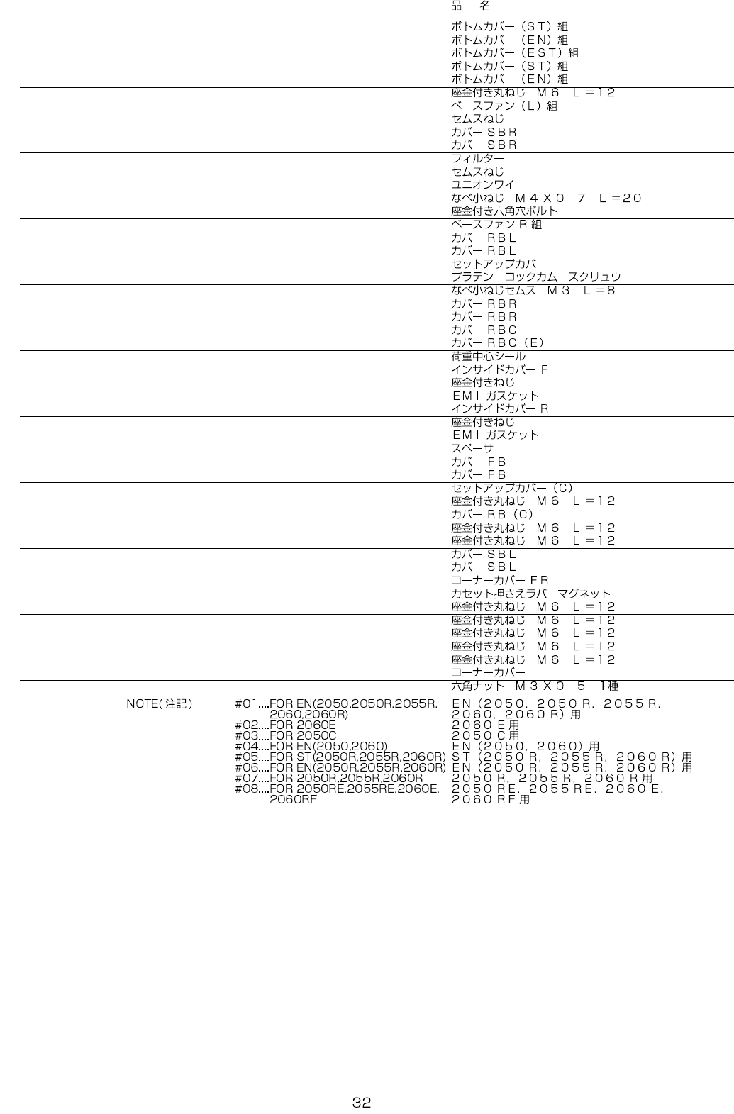 REF.NO NOTE PART NO D E S C R I P T I O N Qty