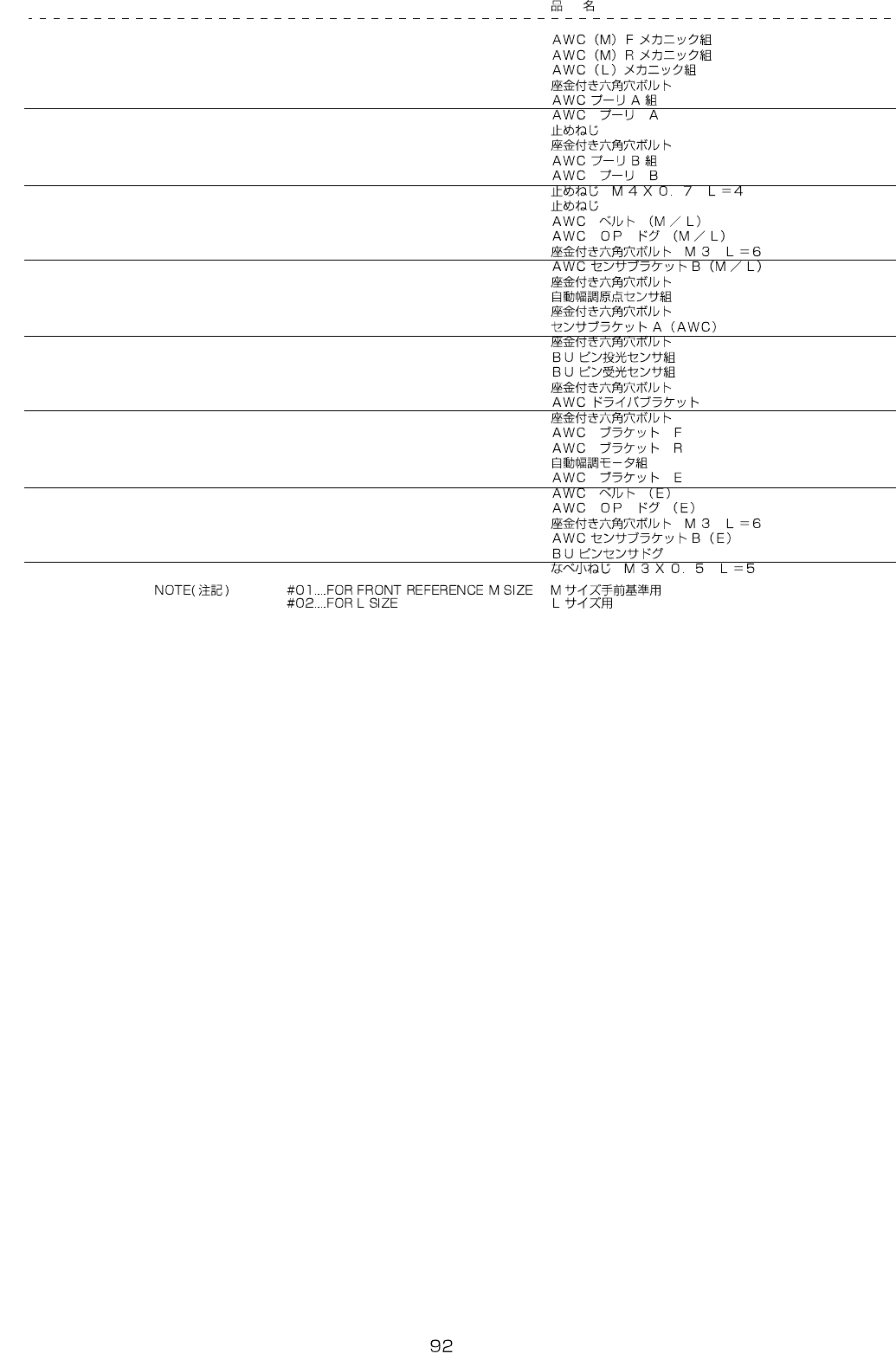 REF.NO NOTE PART NO D E S C R I P T I O N Qty