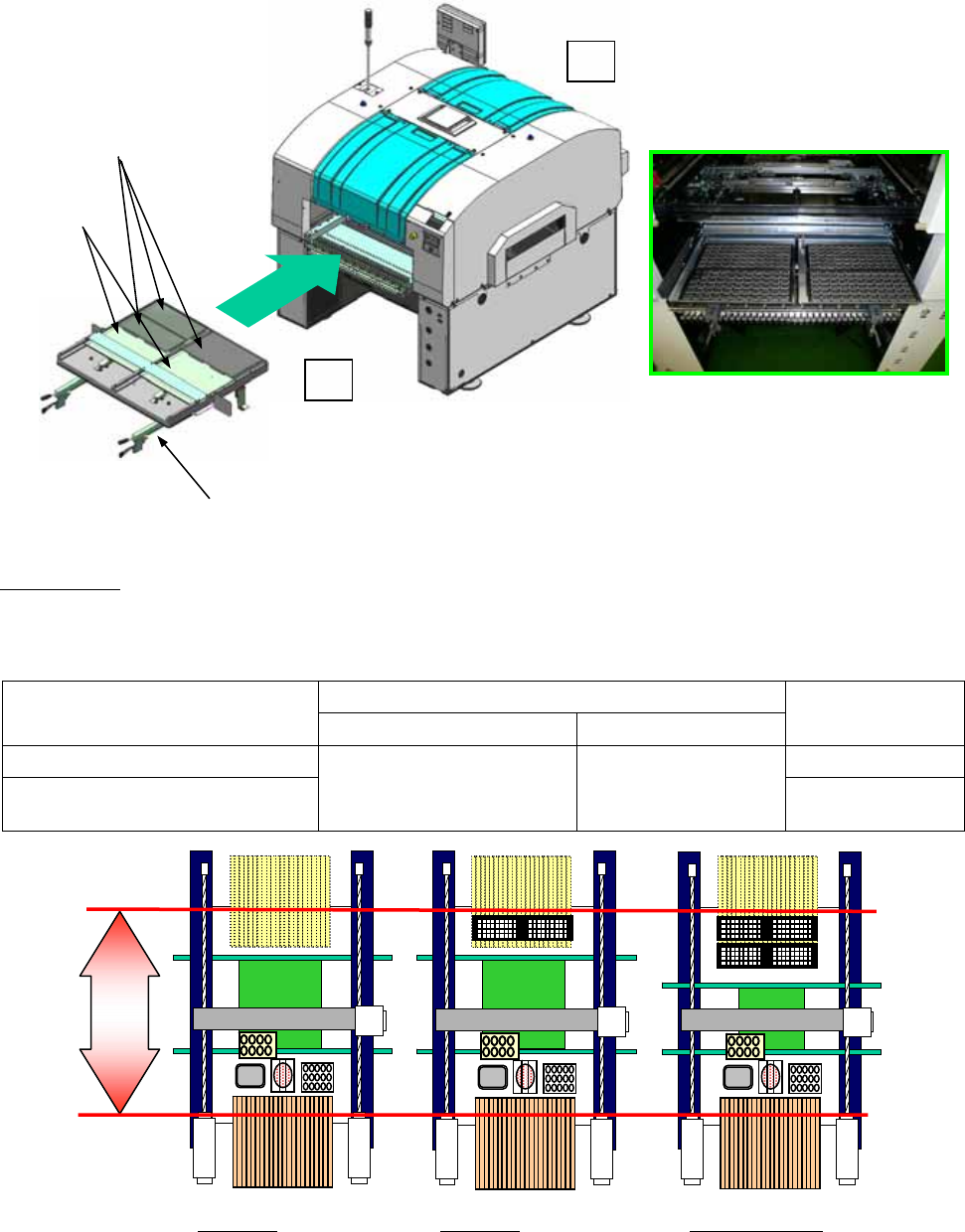 ※后侧的料架和托盘不可同时使用。购买设备时,需要选择基板尺寸。
