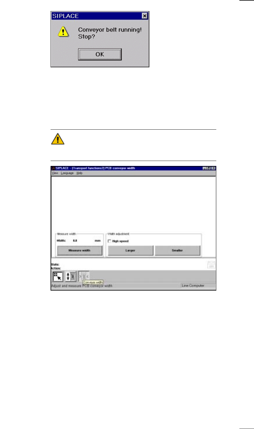 Width adjustment With this menu item you can adjust the width of the PCB conveyor at a
