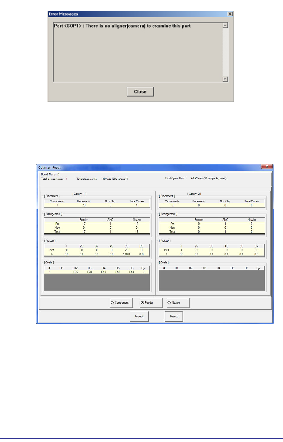 在这部分显示带式喂料器,ANCs和吸嘴的配置状态。