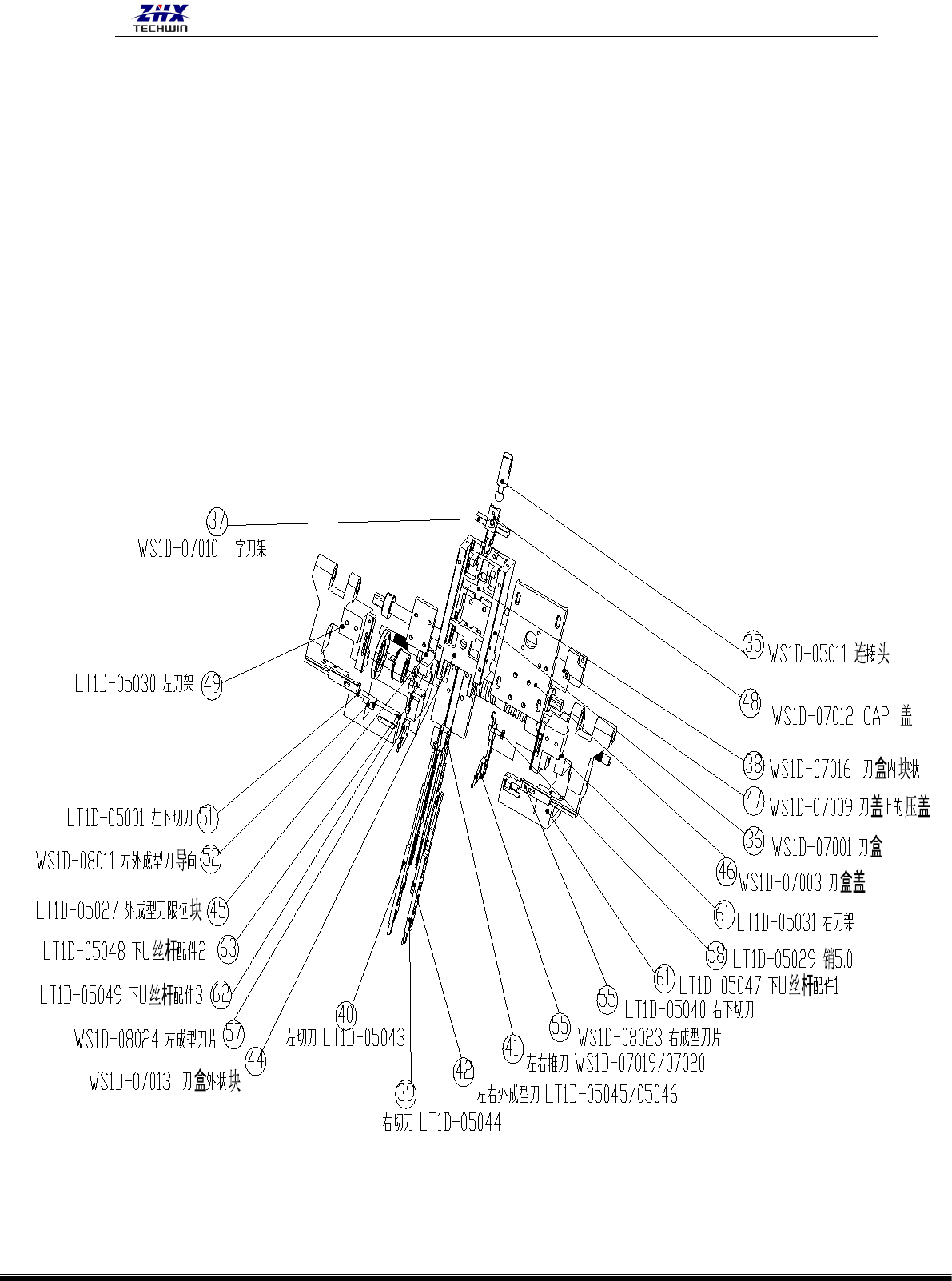 LT1D-05046 及推刀 LT1D-07019、LT1D-07020.左、右下成形刀片 LT1D-05036、LT1D-05037