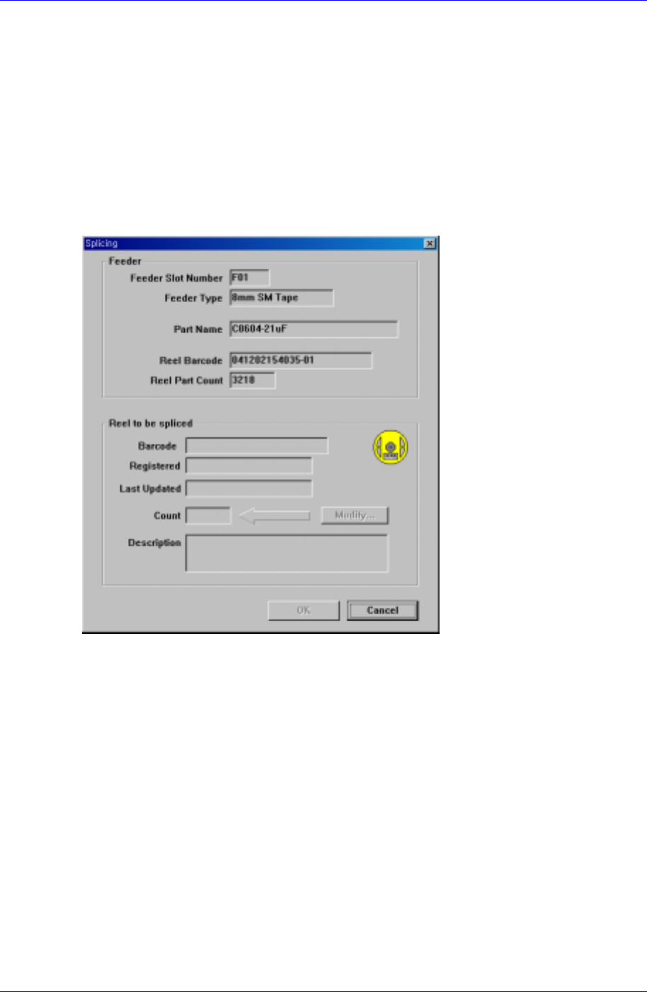 Figure 1-11. Screen configuration for Feeder→Splicing selection