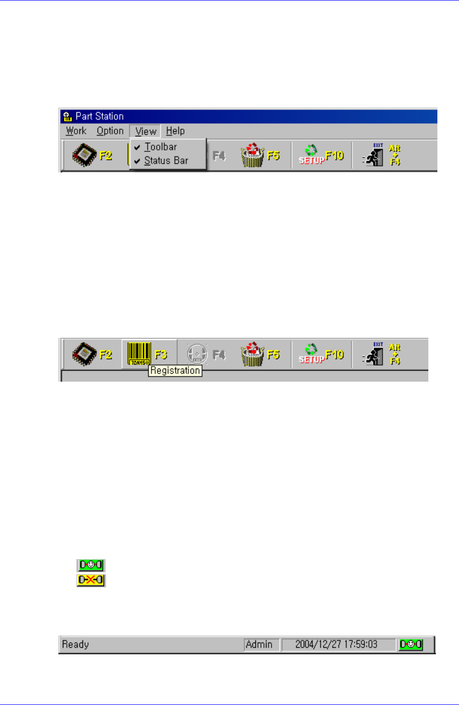 The View menu consists of both a tool bar and status bar that are basically provided by