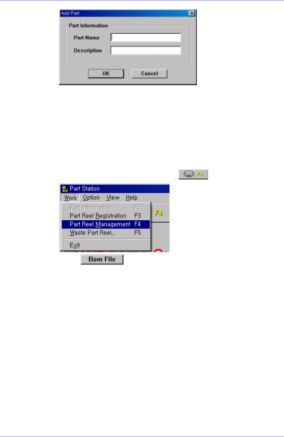 ① As shown in the following figure, select the Part Reel Management (F4)